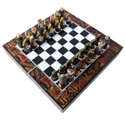 Szachy peruwiańskie drewniane, wzór 2, rękodzieło z Peru