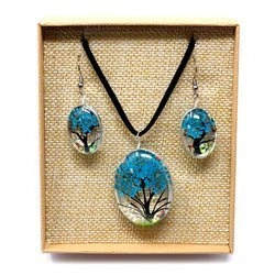 Biżuteria z kwiatami turkusowa, komplet (kolczyki + naszyjnik)
