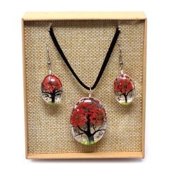 Biżuteria z kwiatami koralowa, komplet (kolczyki + naszyjnik)