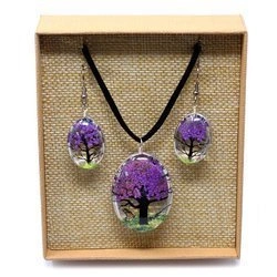 Biżuteria z kwiatami lawendowa, komplet (kolczyki + naszyjnik)