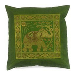 Poszewka na poduszkę orientalna dekoracyjna (40x40, zielona, słoń, Indie)