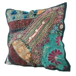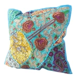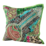 Poszewka na poduszkę 40x40, dekoracyjna, zielona, wyszywana, Indie