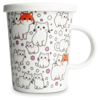 Ceramiczny kubek z zaparzaczem i pokrywką, wzór koty 300 ml
