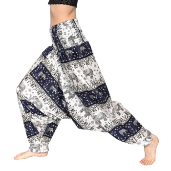 Szarawary, spodnie alladynki, biało-granatowe haremki w słonie