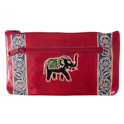 Portmonetka skórzana ze słoniem, czerwona saszetka, Indie