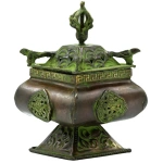 Kadzielnica mosiężna, kadzielniczka z patynowanego mosiądzu tybetańska, 4 symbole Indie