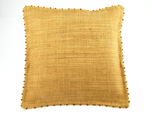 Poszewka na poduszkę wykonana z rafii, zapinana na zamek. W ciepłym, miodowym kolorze ozdobiona drobnymi koralikami z drewna. Ciekawy akcent orientalnej dekoracji w Twoim domu.