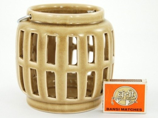 Wyjątkowy świecznik (lampion) wykonany z ceramiki. Posiada otwór na jedną świecę lub podgrzewacz (tealight) o śr. ok. 8 cm.