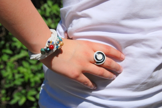 (tagi: bransoletka, bransoletki, bransolety, bransoleta, na rękę, na drucie, biała, koraliki)