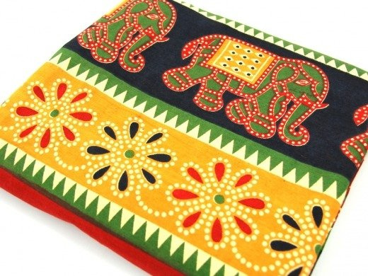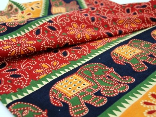 Unikatowa, oryginalna narzuta (kapa, makatka) na łóżko z Indii. Zdobiona naniesionymi metodą batiku wzorami (słoniki, kwiaty). Świetnie nadaje się jako ozdoba mebli lub do powieszenia na ścianie. Ciekawy orientalny element dekoracyjny.