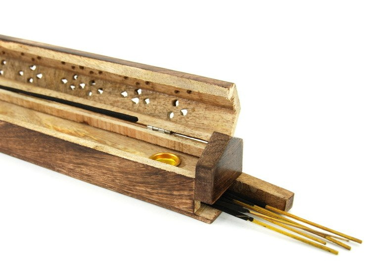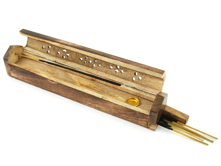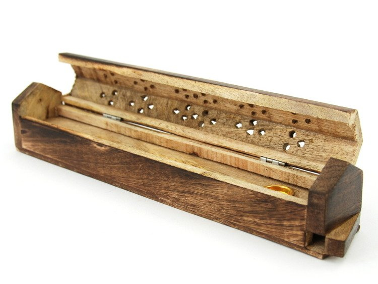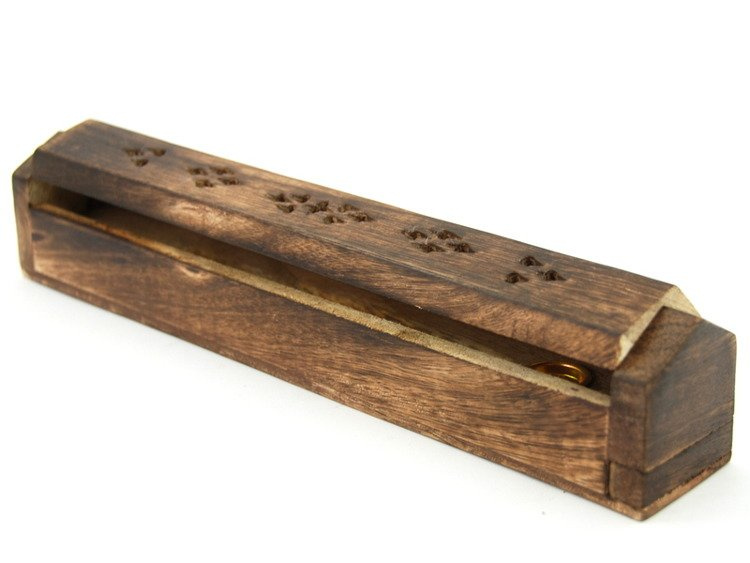 - Stojak na kadzidła z Indonezji. Ręcznie rzeźbiony w drewnie egzotycznym, wykończony ażurowym wzorem. Posiada pojemnik do przechowywania kadzidełek. Przeznaczony do kadzidełek stożkowych oraz na bambusowym patyczku.