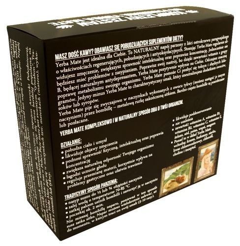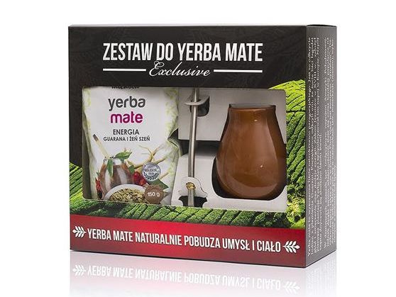 - Idealny zestaw, aby rozpocząć swoją przygodę z yerba mate. Składa się z doskonałej Yerba mate Guarana i żeń szeń 150g, Matero Ceramiczne calabaza 6 br oraz Bombilla nierdzewna Inox Mini.