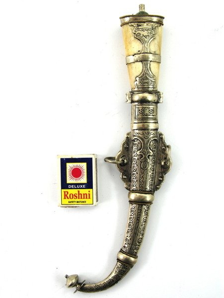 Tradycyjny stalowy sztylet Jambiya z Maroka. Rękojeść wykonana z kości. Całość zdobiona berberyjskimiwzorami. Przedmiot o charakterze dekoracyjnym, nie jest zaostrzony.