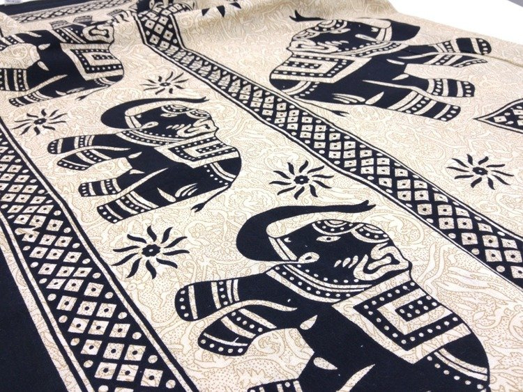 Narzuta na łózko czarno-beżowa słonie (kapa, batik, Indie, orient 140x210cm)
