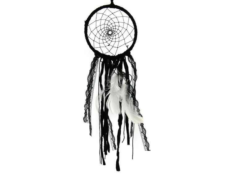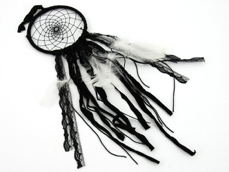 Obręcz, na której rozpięte są nici, dołem zaś doczepione drobne koraliki i piórka. Całość lekko porusza się pod wpływem wiatru, bądź przeciągu. Taniec delikatnych ptasich piór wygląda pięknie, jednak nie o to tu chodzi. Indiański amulet ma do spełnienia o wiele ważniejszą misję...