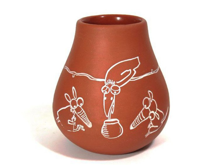 Matero Manaus Pizca del Mundo ozdobione rysunkiem zaczerpniętym z yerba mate Pizca del Mundo Camaqua. Wszystkie matera Pizca del Mundo są wypalane w niewielkiej polskiej pracowni ceramicznej i ręcznie zdobione (dlatego każda sztuka może być trochę inna od poprzedniej), są perełką w morzu ceramicznych mater z chińskich fabryk.