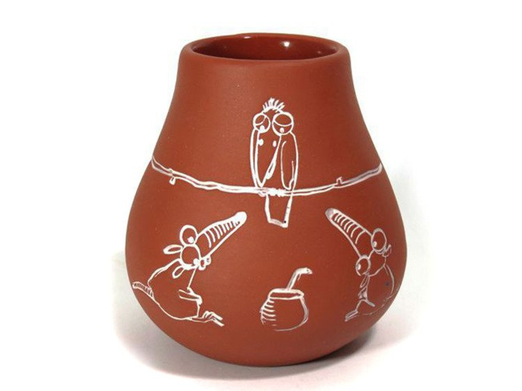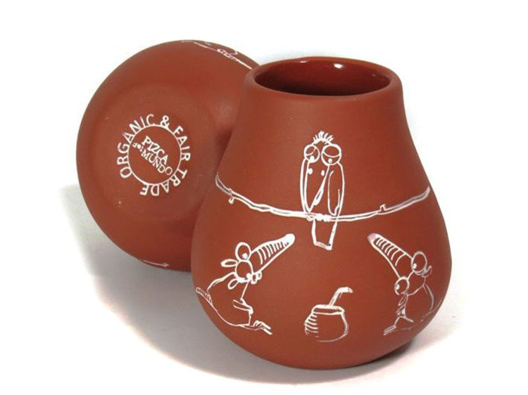 - Matero Manaus Pizca del Mundo ozdobione rysunkiem zaczerpniętym z yerba mate Pizca del Mundo Camaqua. Wszystkie matera Pizca del Mundo są wypalane w niewielkiej polskiej pracowni ceramicznej i ręcznie zdobione (dlatego każda sztuka może być trochę inna od