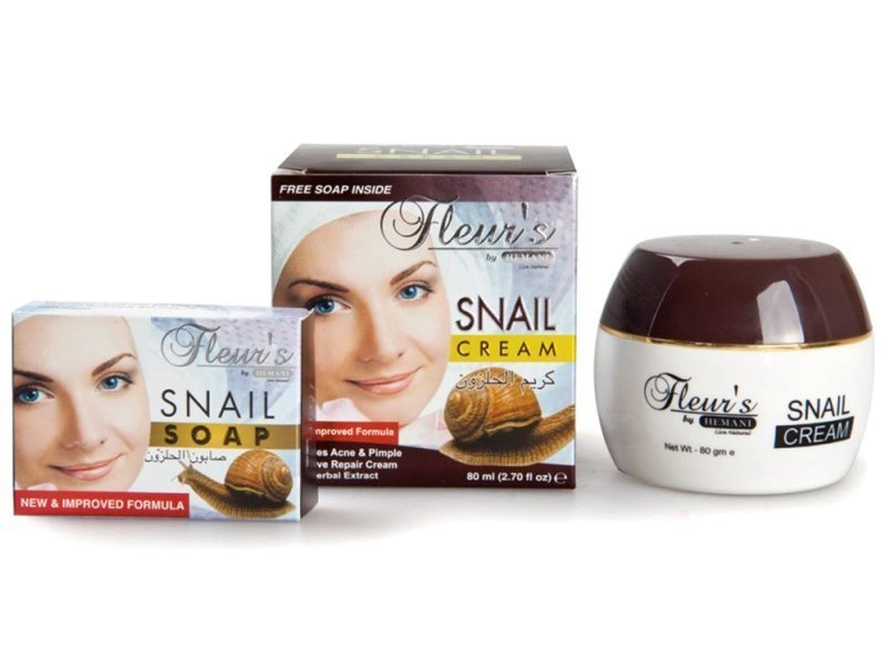 Krem z filtratem ze śluzu ślimaka, w zestawie z delikatnym mydełkiem oczyszczającym.