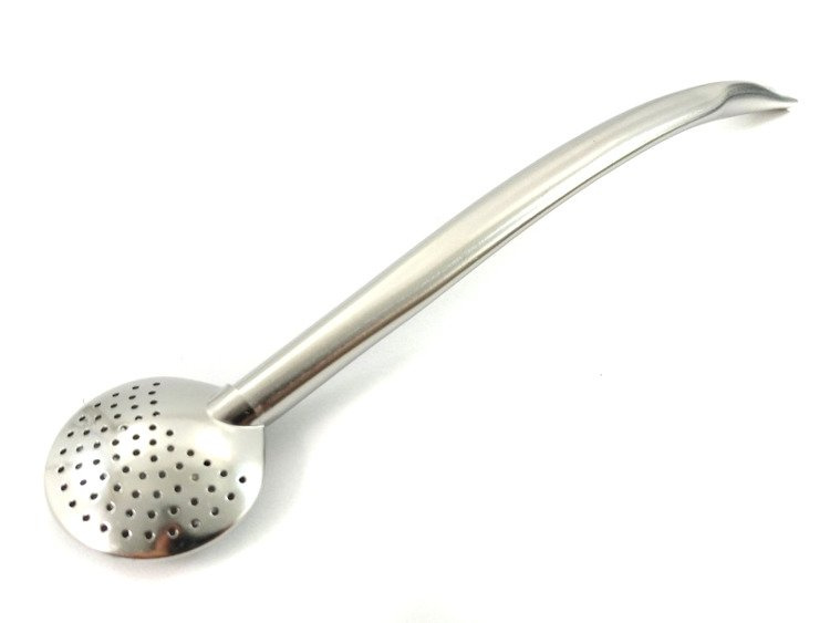 - Bombilla BOMBA typu łyżeczkowego, wykonana ze stali nierdzewnej. Bombille można używać zarówno do yerby na ciepło, jak i na zimno (terrere). Bombilla bardzo dobrze filtruje każdy rodzaj yerby od despelady, aż po ervy drobno mielone.