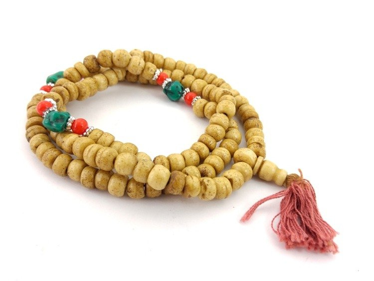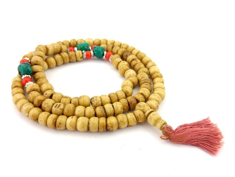 SZNUR MODLITEWNY JAPA MALA Z KOŚCI (108 KORALIKÓW Z LICZNIKAMI)