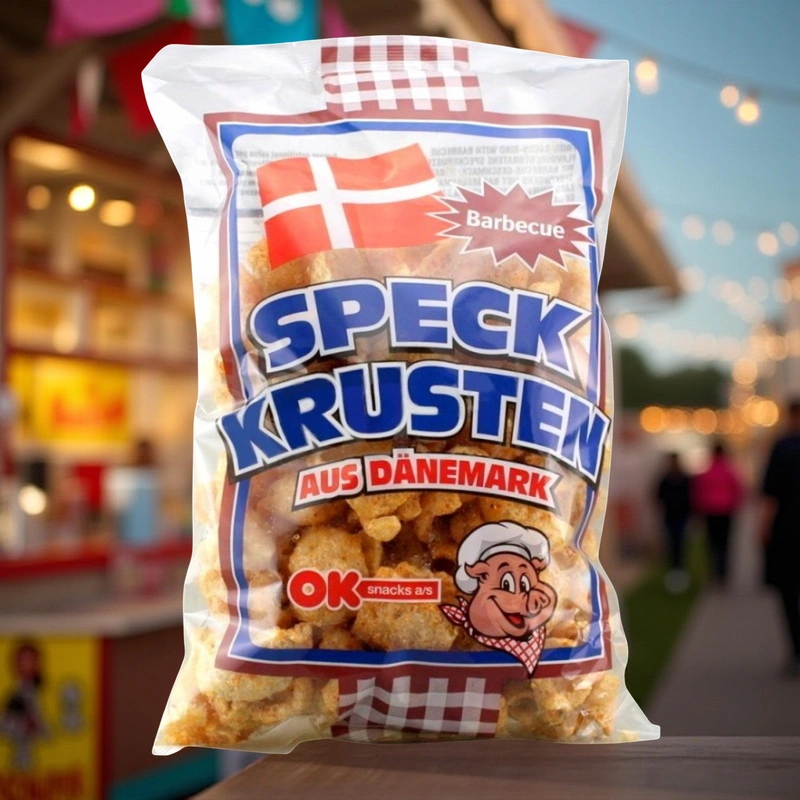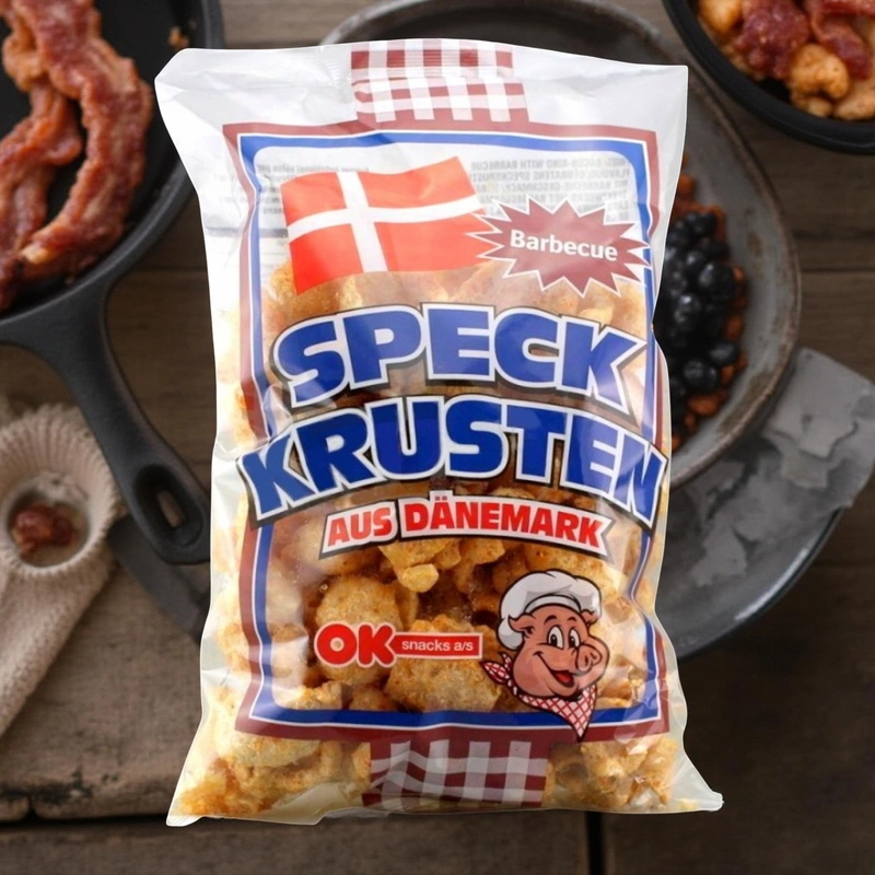 - Naturalna, tradycyjna przekąska w postaci smażonej w głebokim oleju wieprzowej skórki o smaku barbecue. Bardzo chrupiąca i aromatyczna. Doskonała alternatywa dla tradycyjnych chipsów ziemniaczanych. Idealna do piwa.