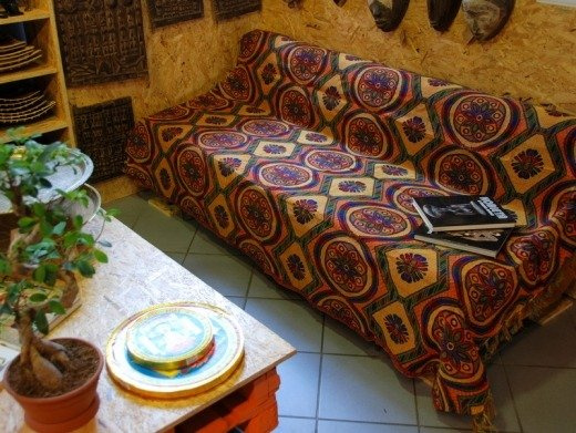 - Bawełniana, gruba narzuta (kapa) na łóżko z Indii. Jednostronna, posiada wielokolorowe wzory, zakończona frędzlami. Niepowtarzalny element dekoracyjny, wprowadzający orientalny klimat do każdego pomieszczenia.