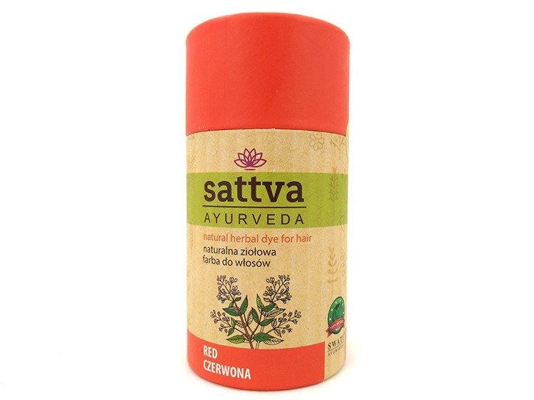 Henna czerwona marki Sattva Ayurweda to ziołowa, naturalna farba do każdego rodzaju włosów. Dzięki naturalnemu składowi henna może być stosowana przez osoby, których włosy są zmęczone koloryzacją włosów chemicznymi farbami. Sprawia, że włosy stają się odżywione i pięknie błyszczą. Henna nadaje się do farbowania włosów siwych. Kolor powstały w wyniku koloryzacji henną, praktycznie się nie wypłukuje, ponieważ zioła wnikająm we włos i go nadbudowują, co sprawia, że z każdą koloryzacją włosy są grubsze i mocniejsze. Henna to świetna alternatywa dla zwykłego, drogeryjnego farbowania, ponieważ nie nadwyręża kondycji włosów - wręcz przeciwnie, jest dla nich naturalną odżywką.
