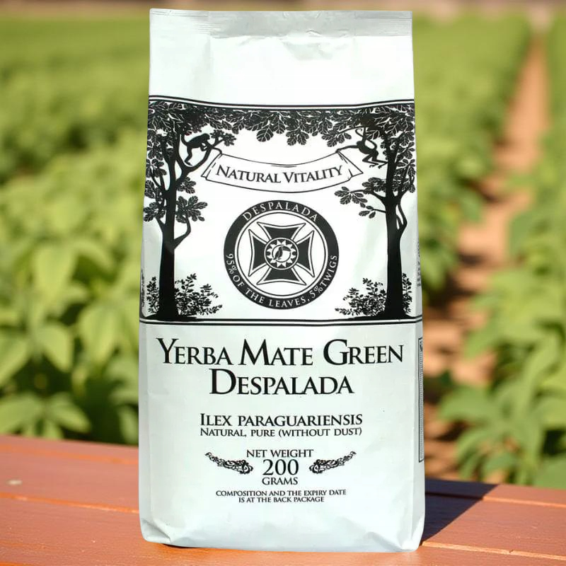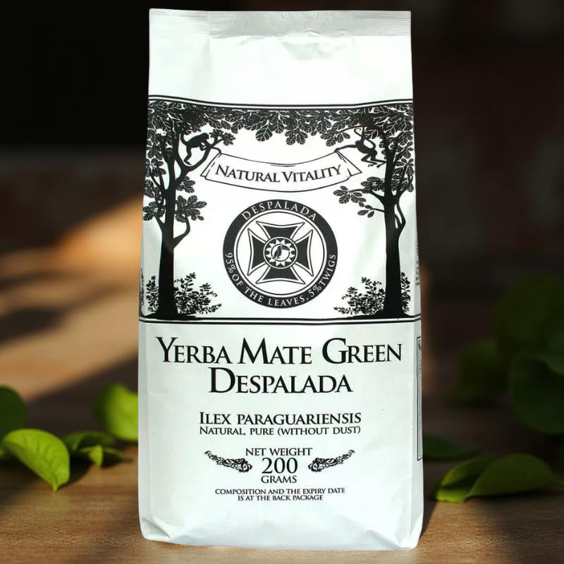 Zielona yerba mate Despalada z Brazylii. Ma działanie pobudzające. Zawiera 95% listków oraz 5% patyczków ostrokrzewu paragwajskiego, ma niewielką ilość pyłu. Yerba mate green suszona jest bez użycia dymu.