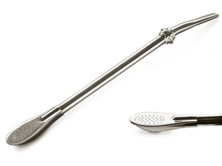 Bombilla Liza zdobiona srebrnym pierścieniem. Bombilla Liza to bombilla typu łyżeczkowego, która została stworzona ze stali nierdzewnej. Bombille można używać zarówno do yerba mate na ciepło, jak i na zimno (terrere), bombila posiada chłodzący srebrny pierścień.