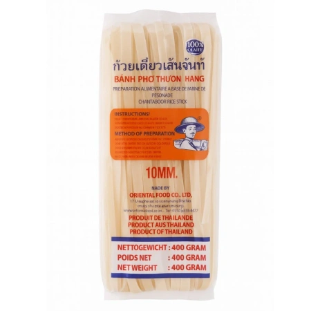 Makaron ryżowy 10 mm przeznaczony do dań kuchni orientalnej. Idelanie nadaje się do zup (Pad Thai, Pho) sałatek, dań z woka, potraw typu chow mein, a także jako dodatek do tradycyjnych posiłków. Jest bezglutenowy i lekkostrawny. Szybki i łatwy w przygotowaniu, wymaga jedynie krótkiej obróbki termicznej.