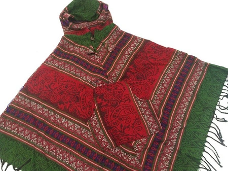 Jest ciepłe i miłe w dotyku, nie krępuje ruchów i nie uczula. Dzięki orientalnym wzorom doda trochę etniczności do garderoby. Żywe kolory idealnie wpasują się krajobraz jesienny. Posiada z przodu pojemną kieszeń. Jest wiązane pod szyją, co pozwala na regulacje kaptura.