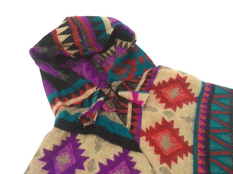 Jest ciepłe i miłe w dotyku, nie krępuje ruchów i nie uczula. Dzięki orientalnym wzorom doda trochę etniczności do garderoby. Żywe kolory idealnie wpasują się krajobraz jesienny. Posiada z przodu pojemną kieszeń. Jest wiązane pod szyją, co pozwala na regulacje kaptura.