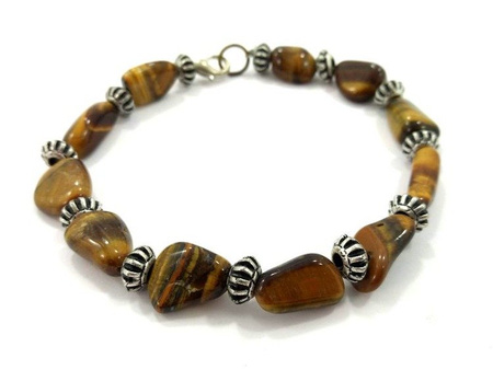 Orientalna bransoletka z pięknym minerałem - tygrysim okiem, który doda uroku każdemu nadgarstkowi. Posiada wygodne zapięcie typu karabińczyk. Świetnie nada się na prezent dla osoby lubiącej nietuzinkową biżuterię.