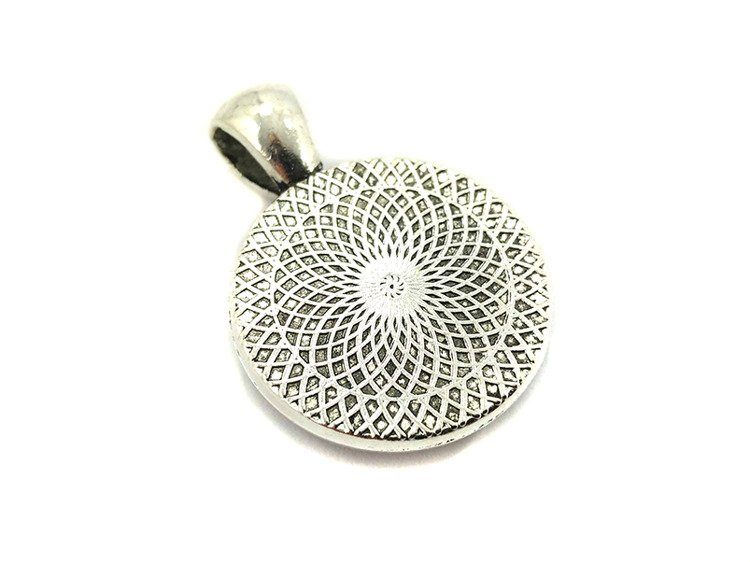 Wisior MANDALOVE wykonany z antyalergicznego metalu i ręcznie malowanej mandali, wklejonej za pomocą wodoodpornej żywicy jubilerskiej.