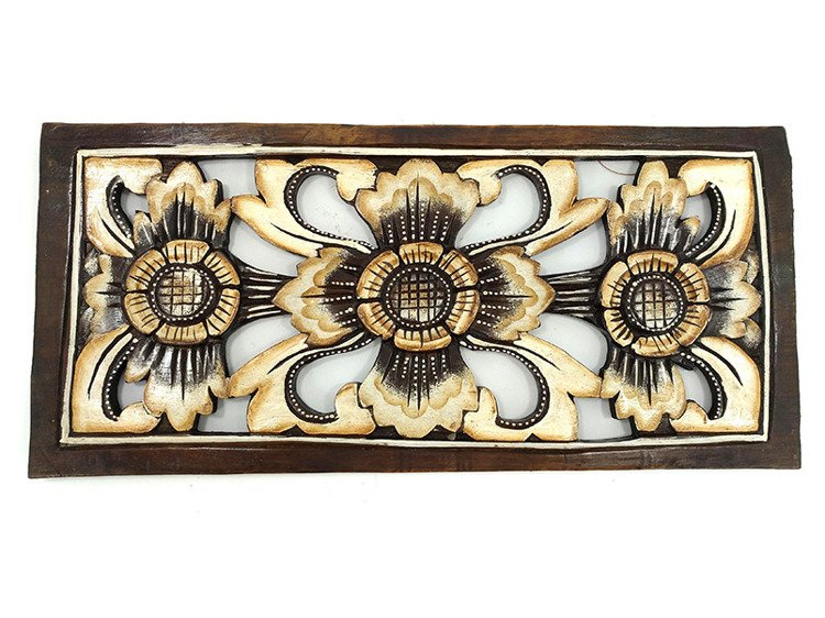 DREWNIANY DEKOR PANEL (ORIENTALNY, RZEŹBIONY, NA ŚCIANĘ, 50 x 23 CM)