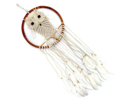 Obręcz, na której rozpięte są nici, dołem zaś doczepione drobne koraliki i piórka. Całość lekko porusza się pod wpływem wiatru, bądź przeciągu. Taniec delikatnych ptasich piór wygląda pięknie, jednak nie o to tu chodzi. Indiański amulet ma do spełnienia o wiele ważniejszą misję...