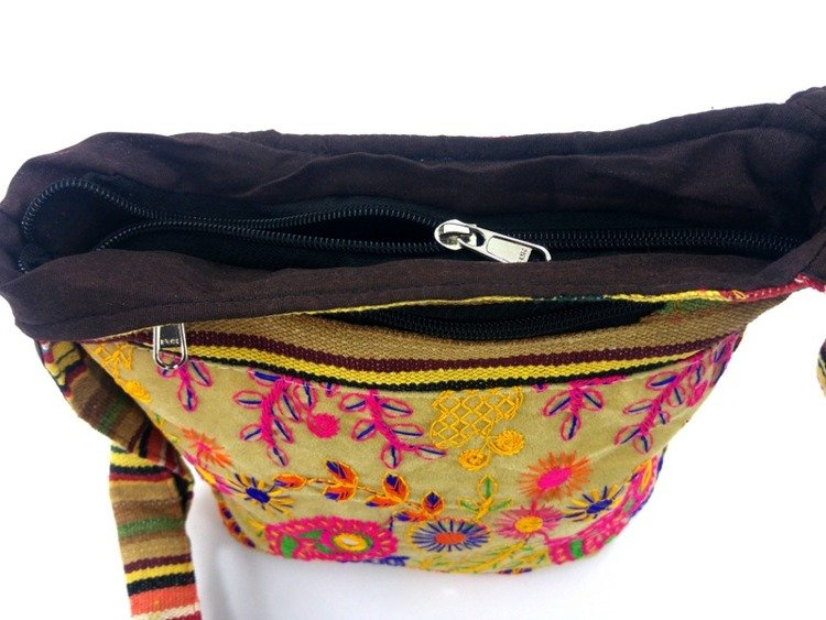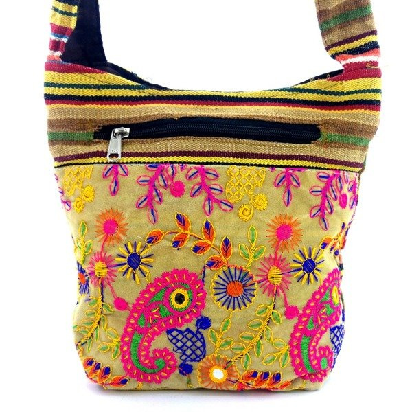 - Orientalna miejska torebka-worek z Indii z wyszywanym motywem kwiatowym.