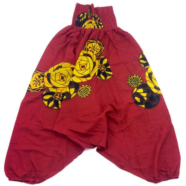 - Orientalne, luźne spodnie - szarawary z szeroką gumką, wykonane z przewiewnego kolorowego materiału, w uniwersalnym rozmiarze.