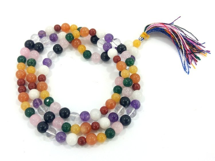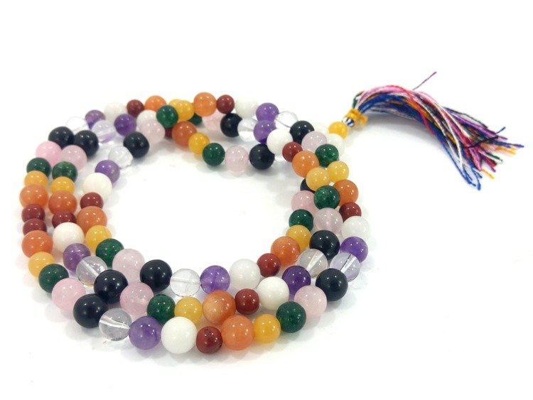 Oferowana mala składa się ze 108 „pereł” o średnicy 6-8 mm wykonanych z kamieni półszlachetnych.