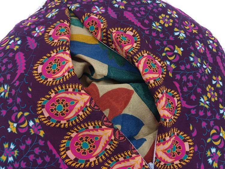Kolorowa pufa, wykonana z przyjemnej tkaniny. Składa się z dwóch części - poduszki wypełnionej naturalną łuską gryczaną, która z łatwością dopasowuje się do wygodnej pozycji oraz poszewki z pięknym, orientalnym wzorem. Poszewka posiada zamek błyskawiczny, co sprawia, że z łatwością można ją zdjąć i wyprać.