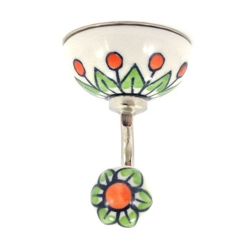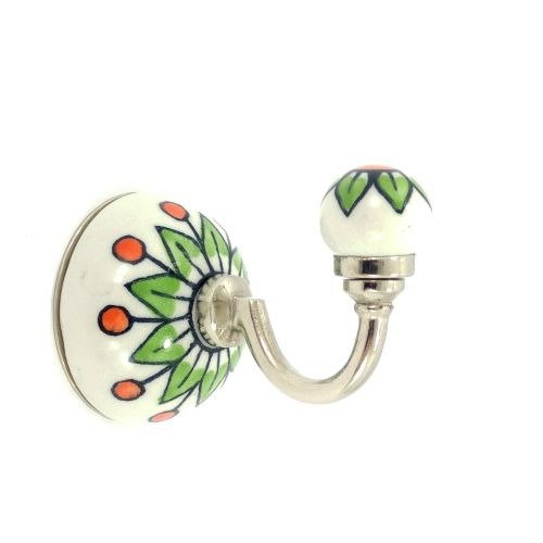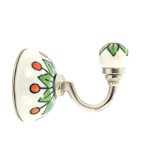 - Ozdobny haczyk ścienny, metalowy, ozdobiony dwoma elementami ceramicznymi, ręcznie malowanymi.