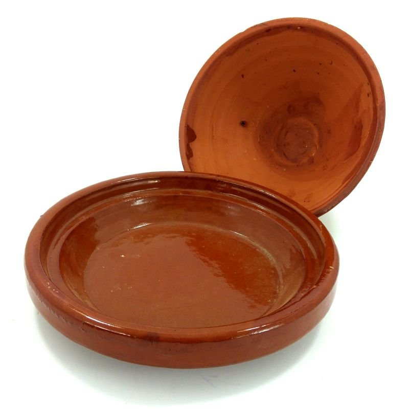 Gliniany tagine to głęboki talerz z pokrywką w kształcie stożka.