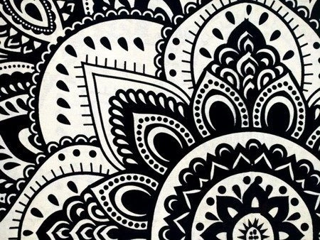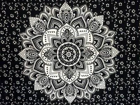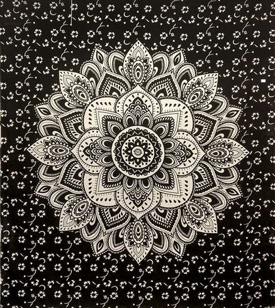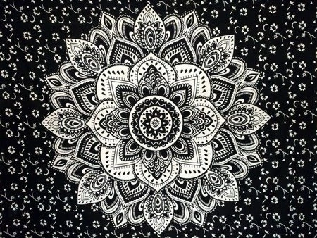 Orientalna narzuta na łóżko, czarno - biała mandala (kapa, zasłona, Indie) 140 x 210