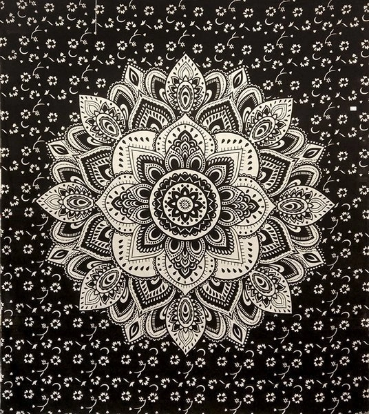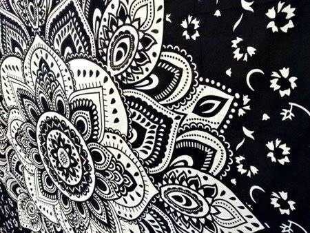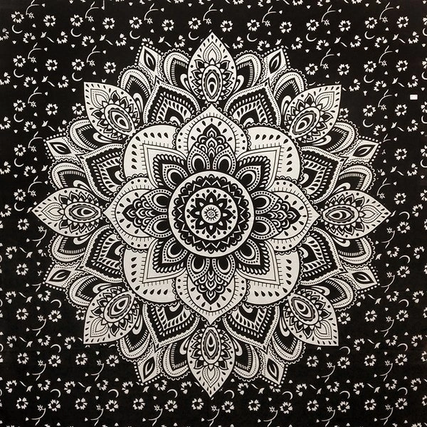 Opinie o Orientalna narzuta na łóżko, czarno - biała mandala (kapa, zasłona, Indie) 140 x 210