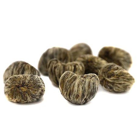Zielona herbata kwitnąca Gold Ingot to wysokiej jakości, najmłodsze listki zwinięte są w artystyczny sposób w kształt serca.