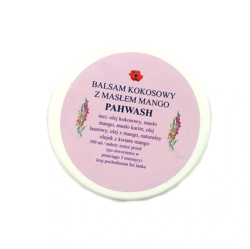 - Balsam kokosowy z masłem mango Pahwash posiada właściwości ściągające skórę działa więc napinająco i ujędrniająco.