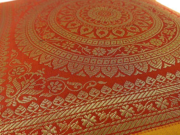 Poszewka jednostronna zapinana na zamek. Ciekawy akcent orientalnej dekoracji w Twoim domu. Dekoracja w kolorze pomarańczowym z motywem mandali.