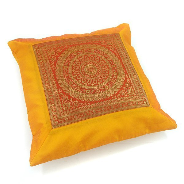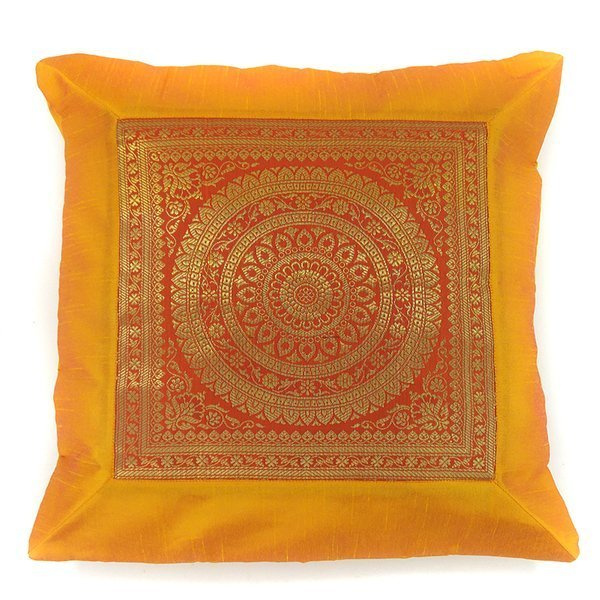 Poszewka na poduszkę orientalna dekoracyjna (40x40, pomarańczowa, mandala, Indie)