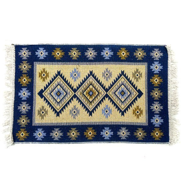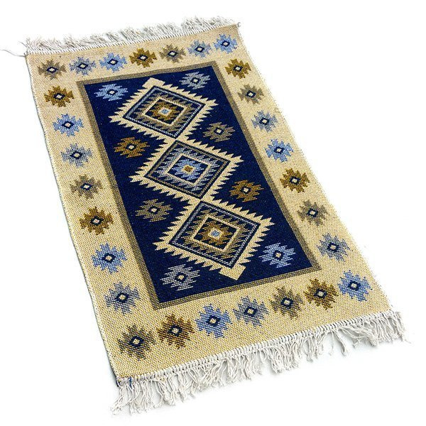 DYWAN CHODNIK KILIM TURECKI KWADRATY NIEBIESKI 60 x 90cm