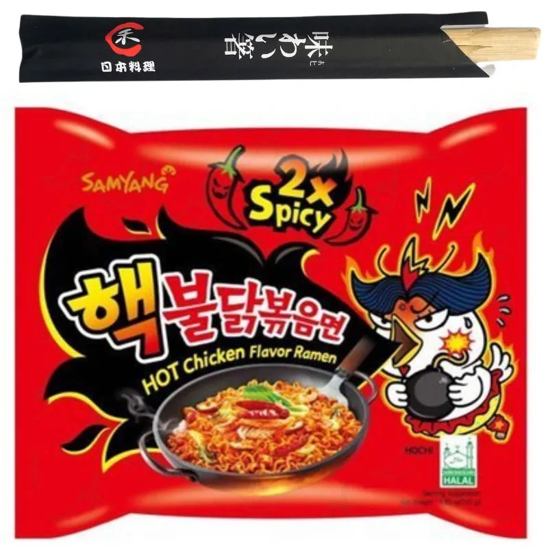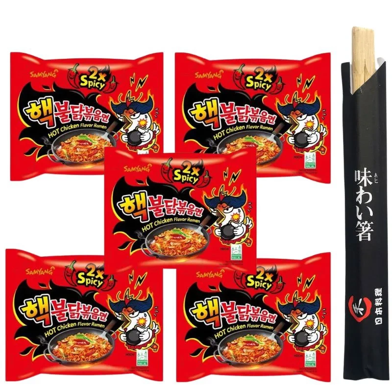 Zupka Buldak 2x Spicy kurczak bardzo ostra zupa zestaw 5x140g pałeczki GRATIS